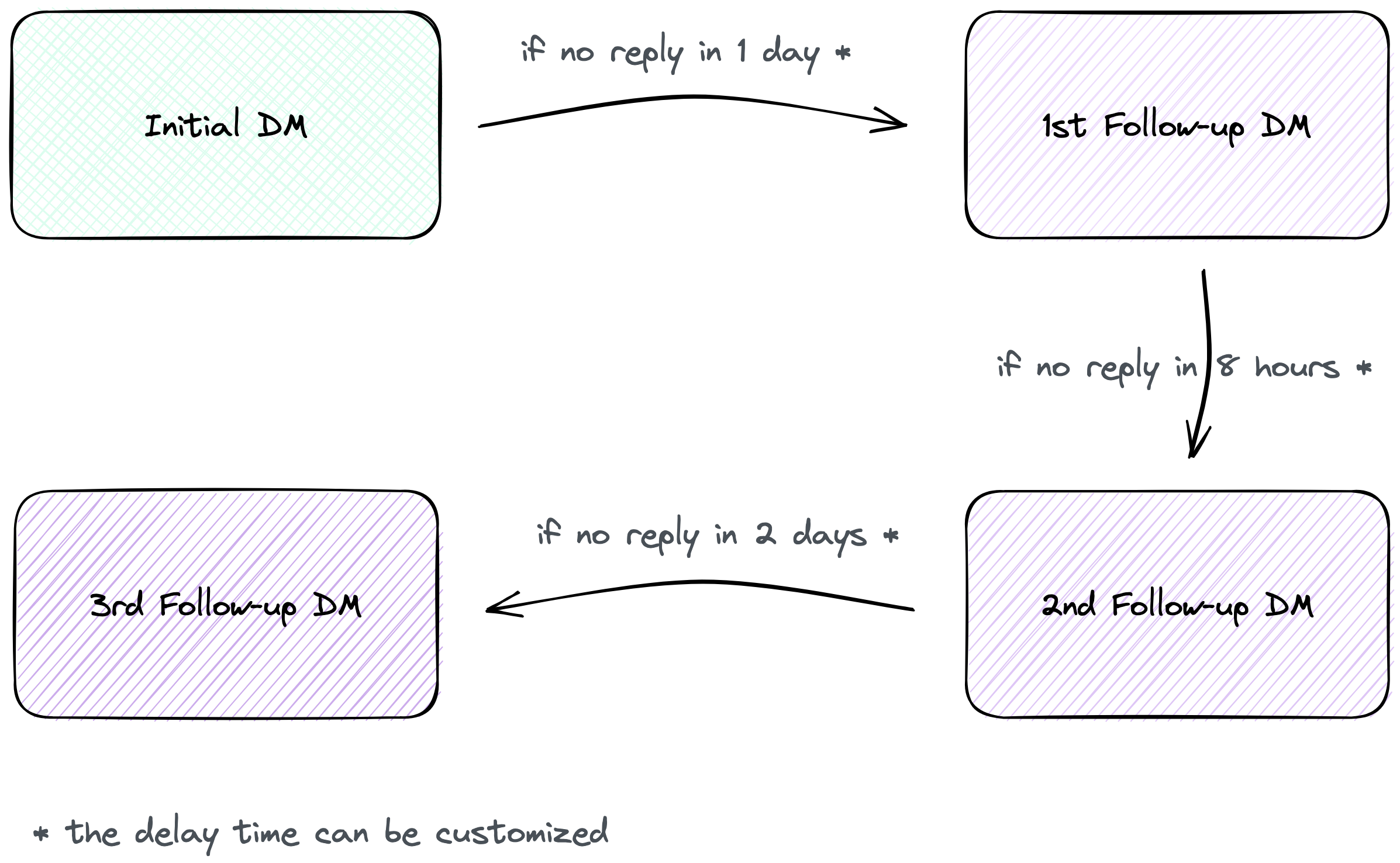 If the initial cold outreach DM does not receive a reply, the first follow-up message is automatically sent after the amount of time you specify.